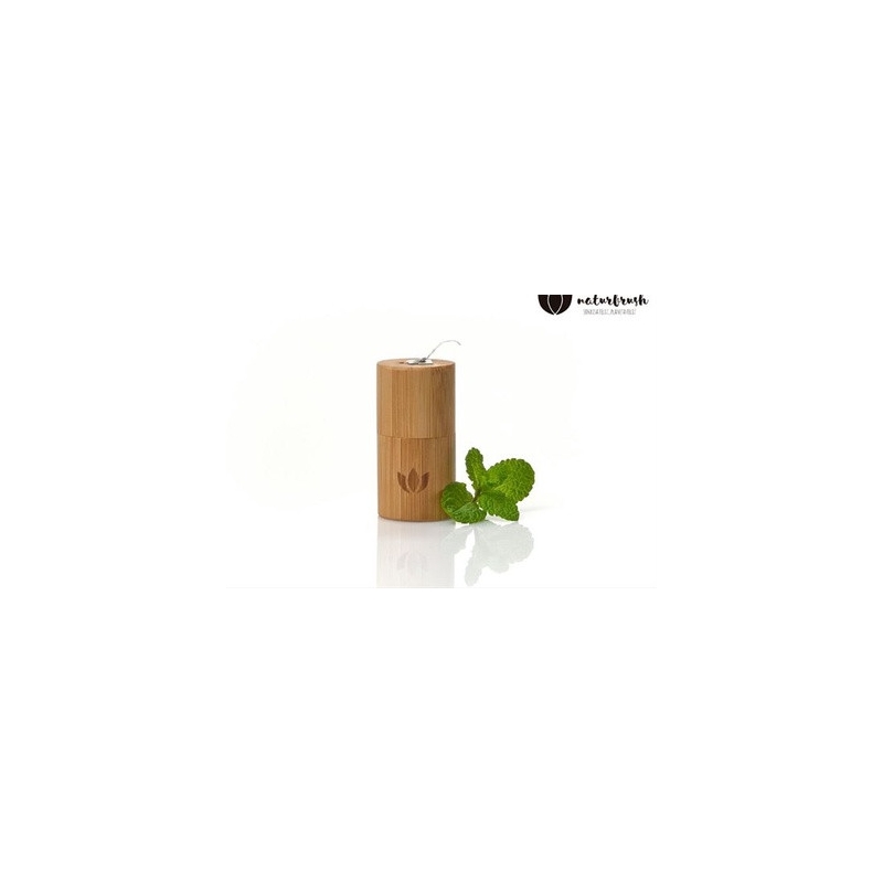 O fio dental Naturbrush 100% vegetal com óleo essencial de hortelã-pimenta é provavelmente o fio dental mais biodegradável que existe, já que seu estojo, além de reutilizável, é feito de bambu moso 100% biodegradável.